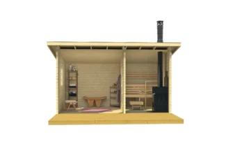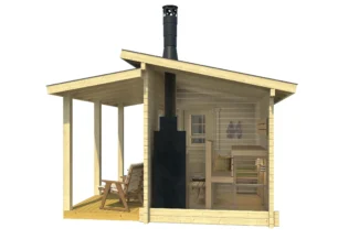 Villu je luksuzna spoljašnja drvena sauna sa debelim zidovima (70 mm), predsobljem i natkrivenom terasom. Dimenzije su pažljivo dizajnirane da ponude maksimalan komfor i estetiku u vašem dvorištu ili vikendici.