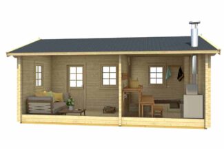 Prednosti: prostran predsoblje i terasa, izuzetna izolacija zahvaljujući 70 mm zidovima, robusna nordijska konstrukcija – idealna za komforno sauniranje tokom cele godine.