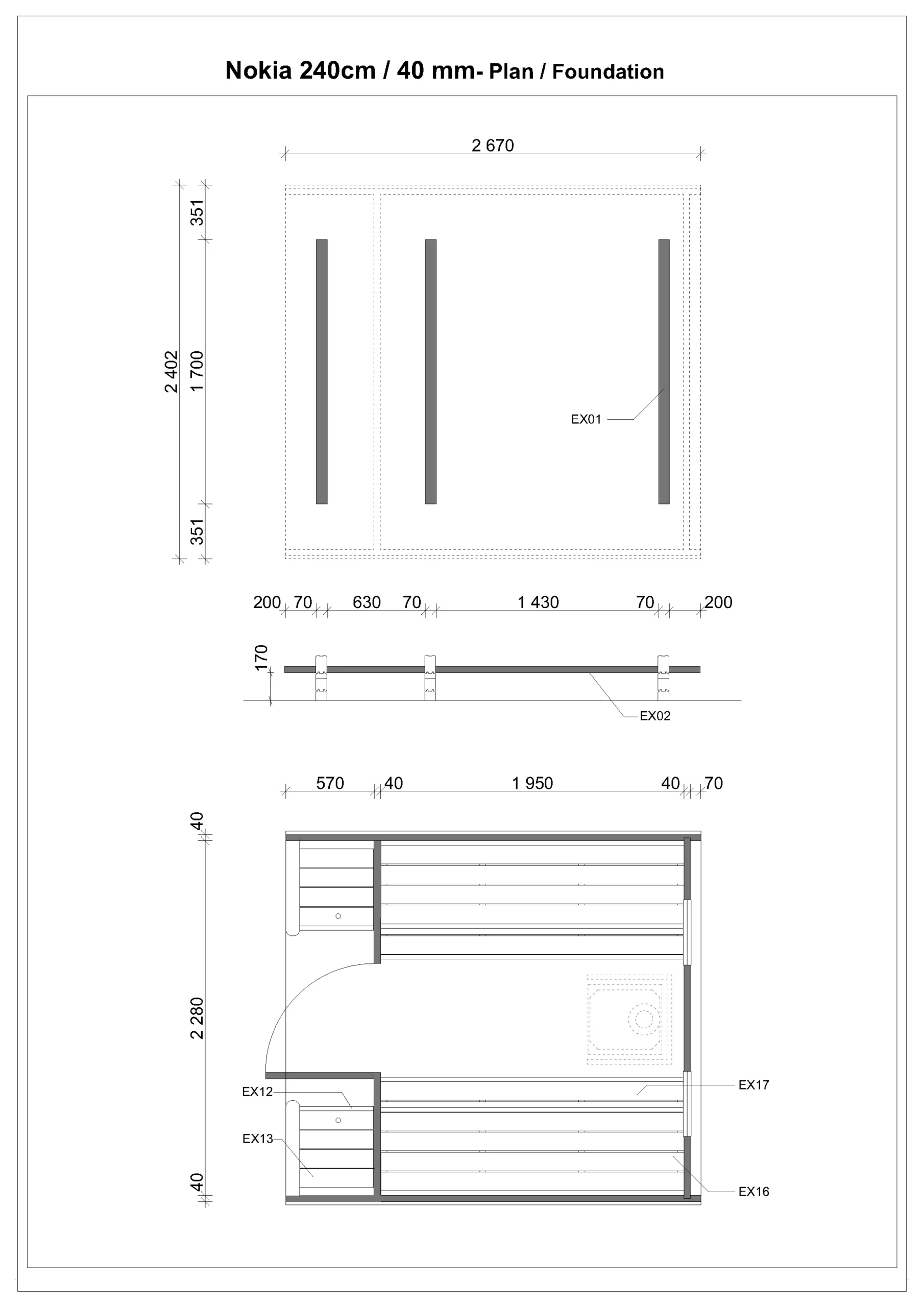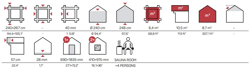 Sa spoljnim dimenzijama 240 x 267 cm i debljinom zida 40 mm, sauna Nokia nudi izuzetnu prostornost i energetsku efikasnost.