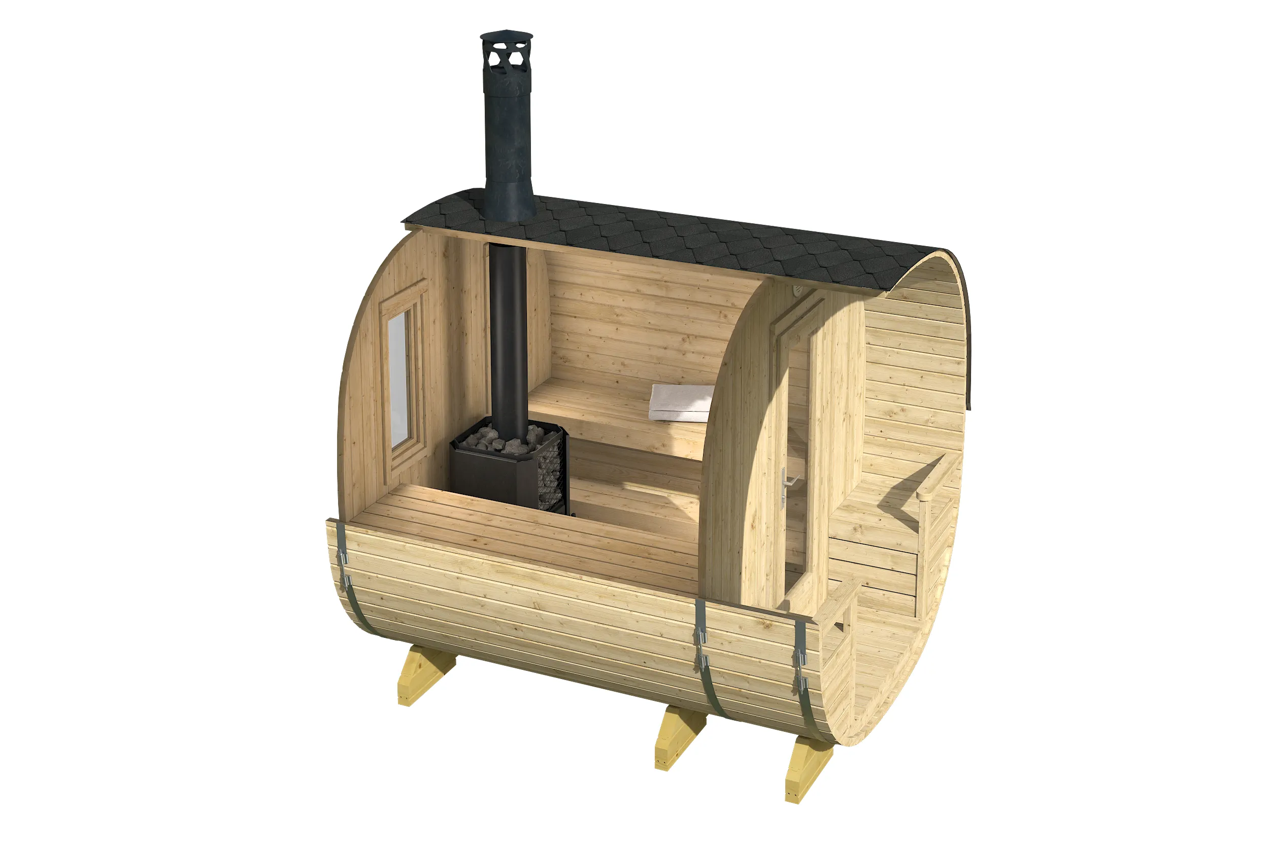 Bačvasta sauna Nokia donosi prostor, udobnost i snagu pravog finskog sauniranja – u vašem dvorištu. Dizajnirana za više korisnika, idealna je za porodično ili prijateljsko uživanje u toploti i opuštanju. Montirana i spremna za isporuku, može se transportovati na bilo koju pristupačnu lokaciju uz pomoć kamiona sa dizalicom.