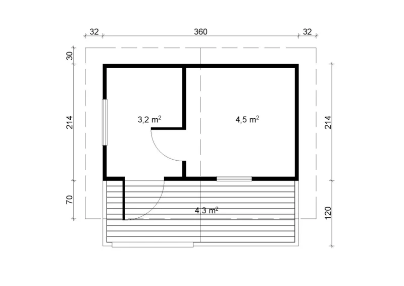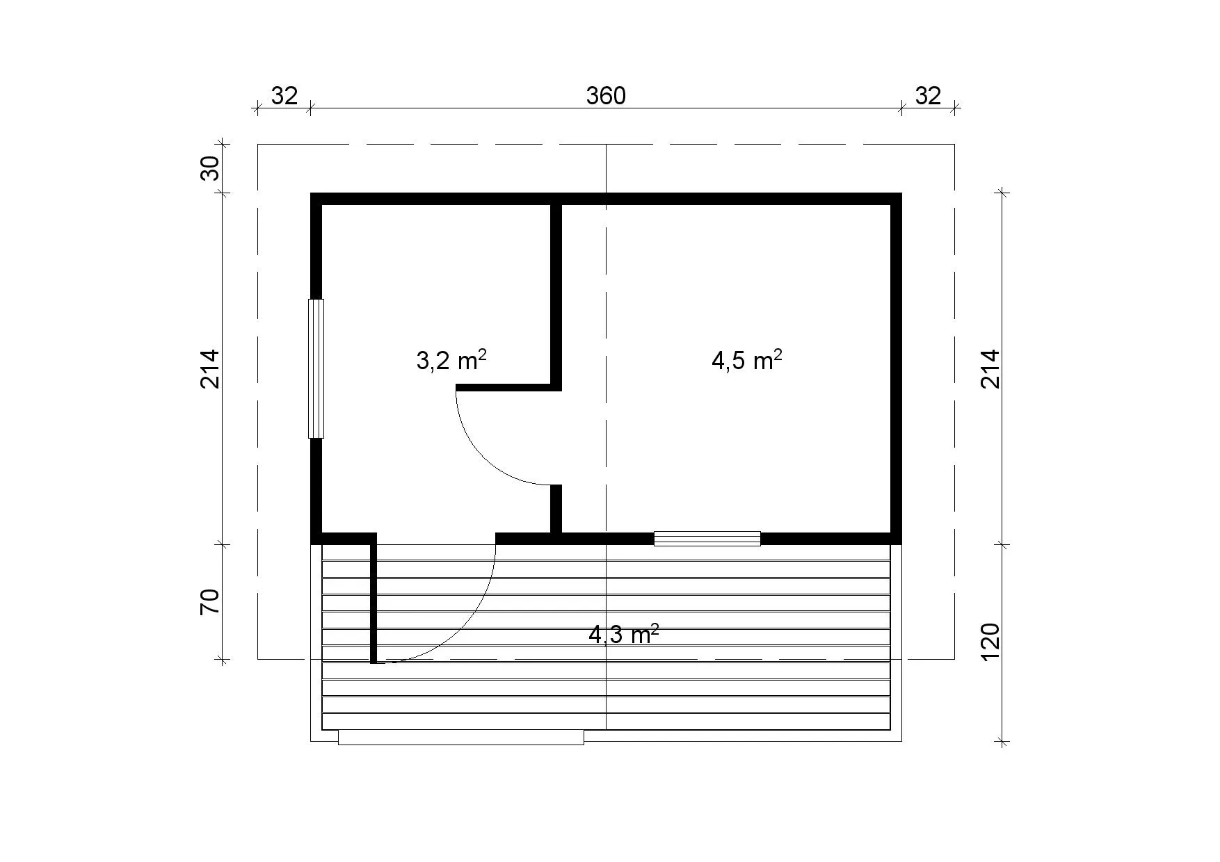 Prednosti: kompaktna, pogodna za manje dvorišne prostore, sa terasom i osnovnom izolacijom zidova – odlična za privatnu upotrebu tokom cele godine.
