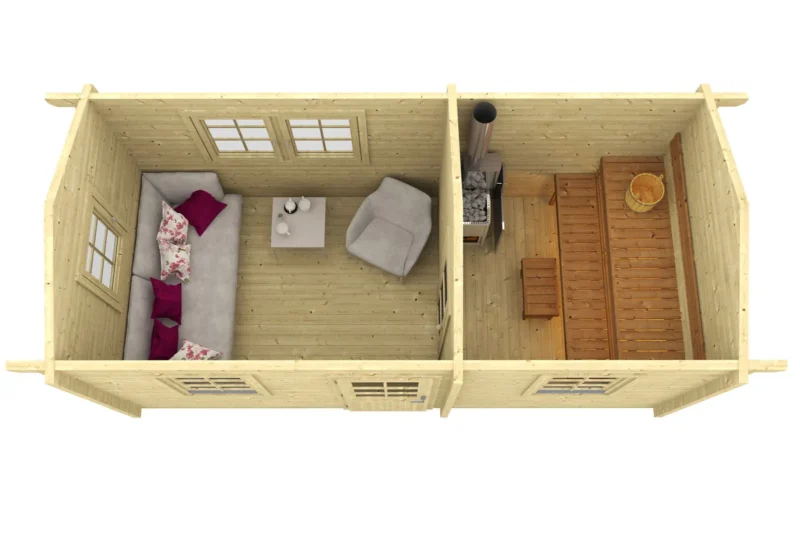 Drvena finska sauna Piha-Tuuri 13 je savršen spoj masivne konstrukcije, prirodnih materijala i visokog kvaliteta izrade. Idealan je izbor za sve koji žele da svoj dom ili vikendicu obogate pravim finskim wellness ugođajem – bez kompromisa u estetici, komforu i dugovečnosti.
