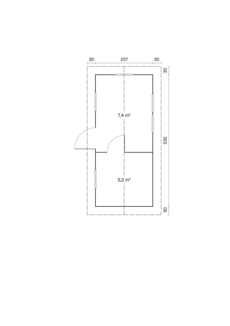 • Spoljašnje dimenzije zida: 237 x 535 cm