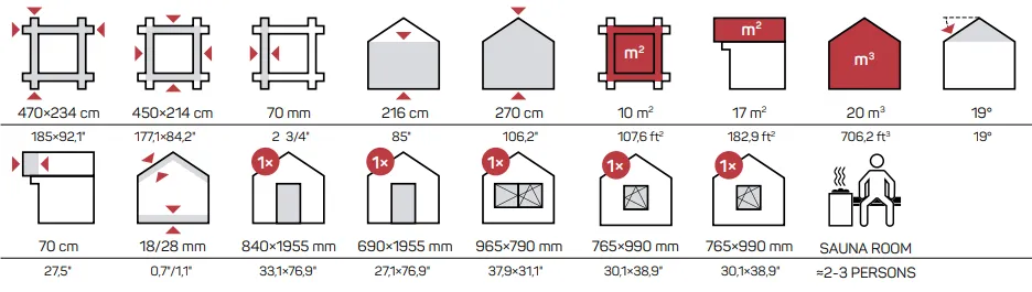 Sauna Niklas sa terasom je idealno rešenje za manje podne prostore, kombinujući praktičnost i udobnost. Zidovi debljine 40 mm od nordijske smreke pružaju solidnu izolaciju, a ugrađena terasa i klupa omogućavaju relaksaciju pre i posle sauniranja.