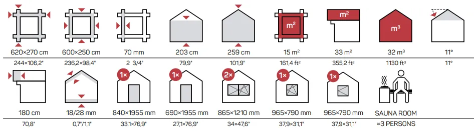 Drvena finska sauna Piha-Tuuri 25 je idealan izbor za one koji žele kompletno spa iskustvo u sopstvenom domu, vikendici ili dvorištu. Dizajnirana za maksimalan komfor, izdržljivost i estetiku, ova sauna pruža autentičan doživljaj sauniranja uz vrhunske materijale i kvalitet izrade.