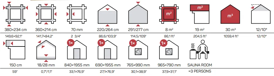 • 100% nordijska smreka – prirodno otporno drvo, poznato po svojoj izdržljivosti i toplotnoj efikasnosti