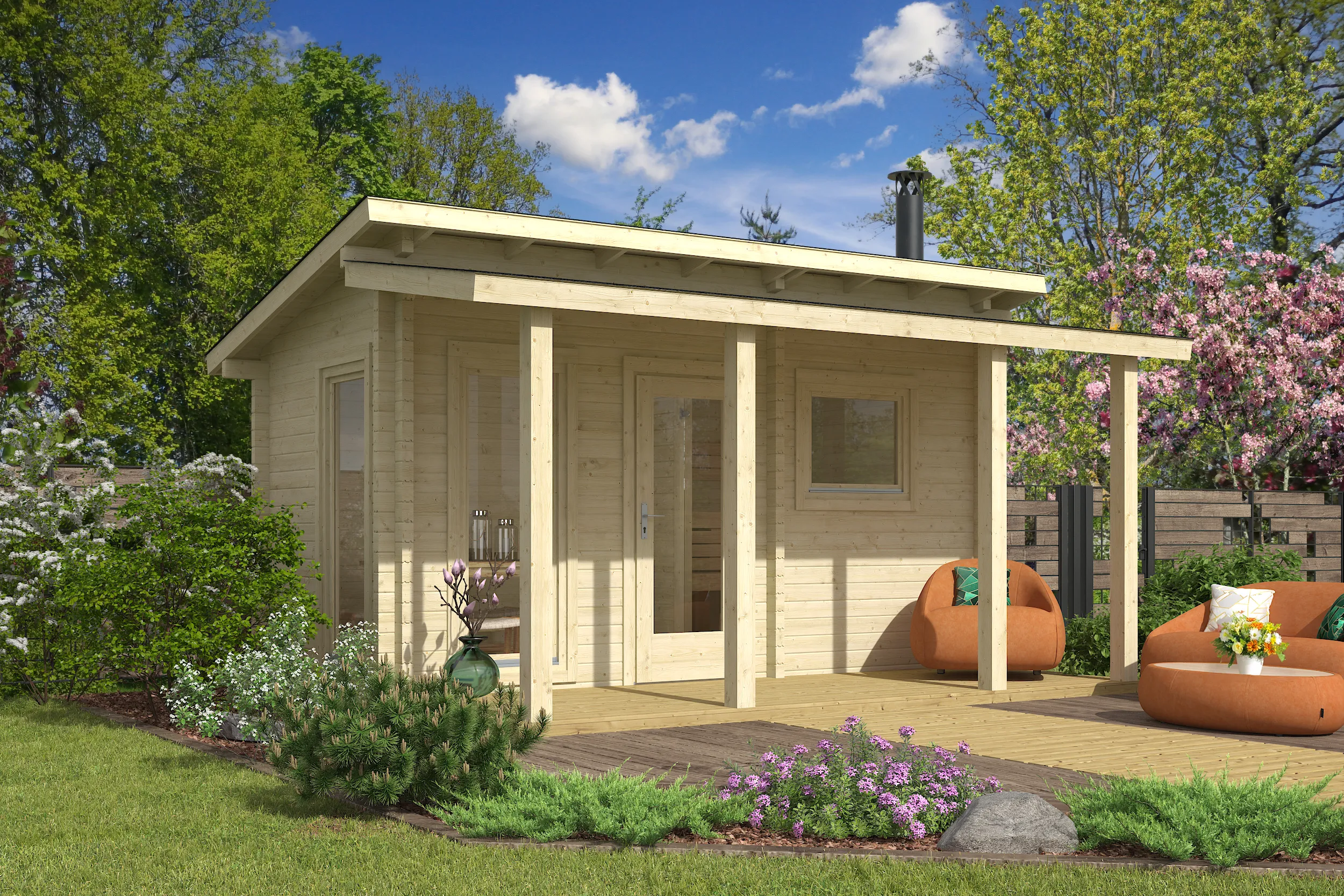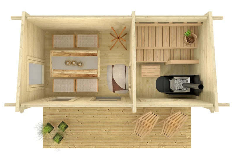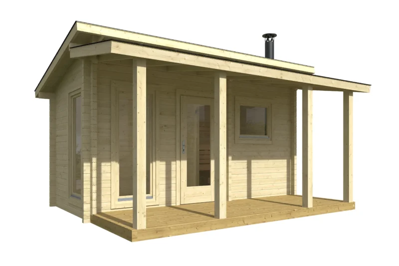 Drvena sauna Hannu sa predsobljem i terasom – elegantno & funkcionalno