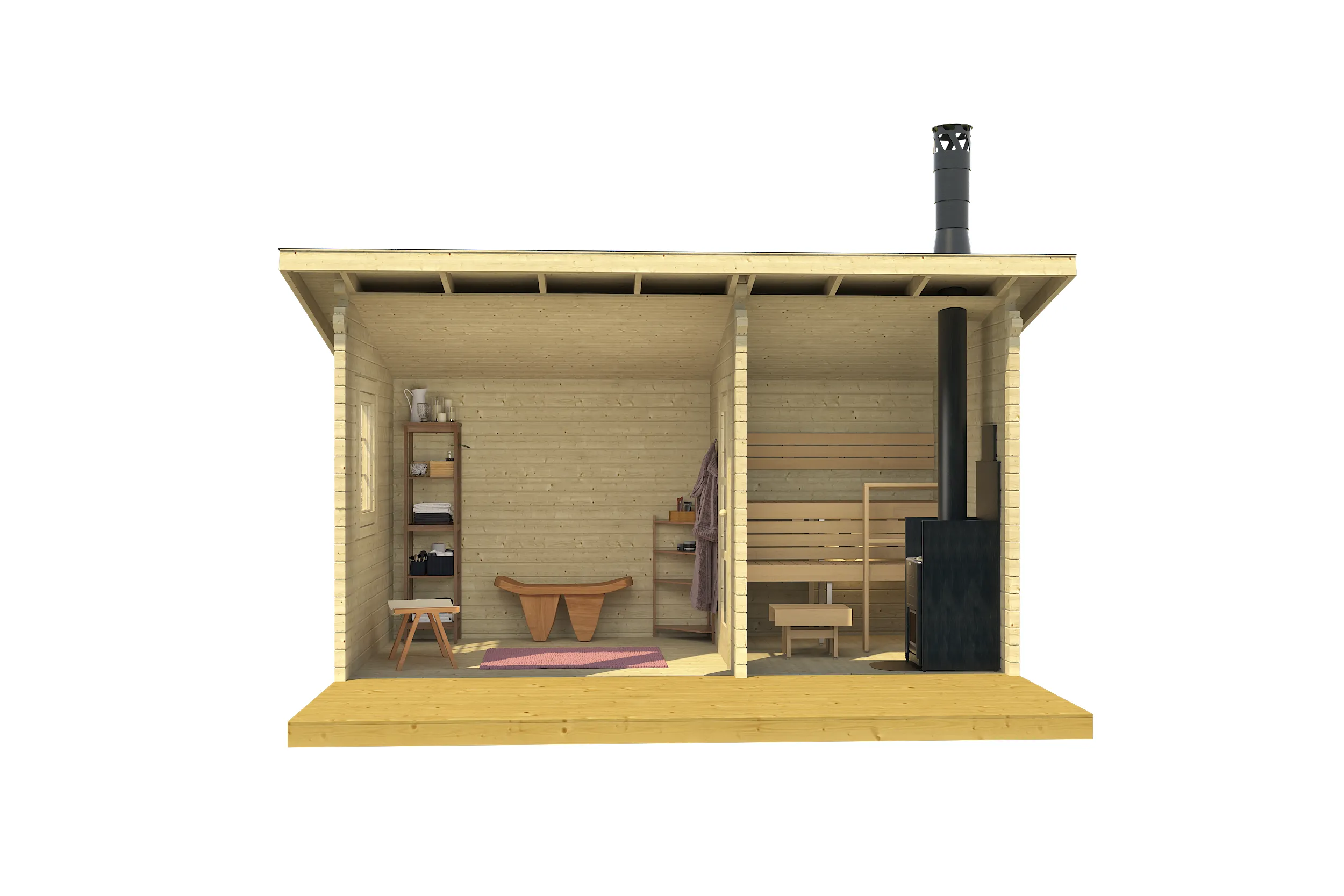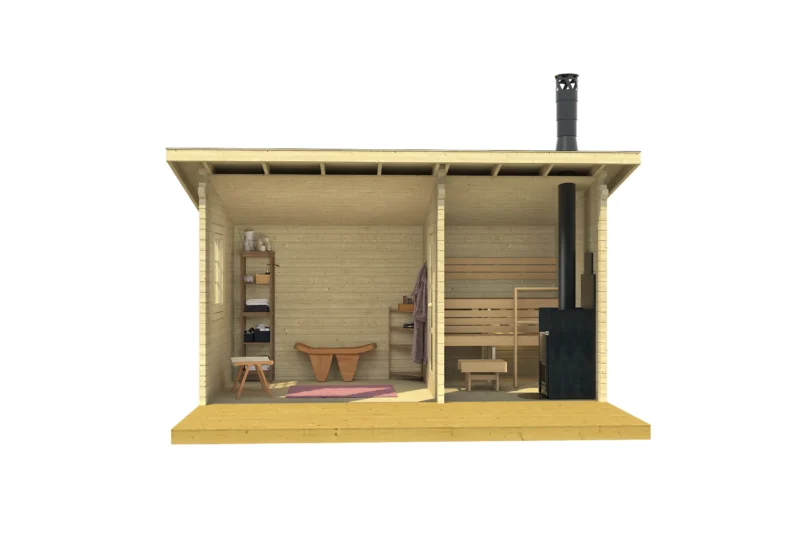 Pihasauna 15 je savršen spoj tradicionalnog sauniranja i moderne konstrukcije, idealna za porodičnu upotrebu ili vikend odmor – tokom cele godine, bez kompromisa u komforu.