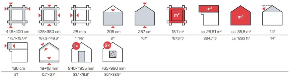 Kućica je izrađena od 100% visokokvalitetne nordijske smrče, poznate po dugovečnosti, otpornosti i prijatnoj teksturi. Zidovi debljine 28 mm pružaju osnovnu termoizolaciju i čvrstinu konstrukcije, dok dvostruka staklena vrata i prozori omogućavaju obilje prirodne svetlosti.