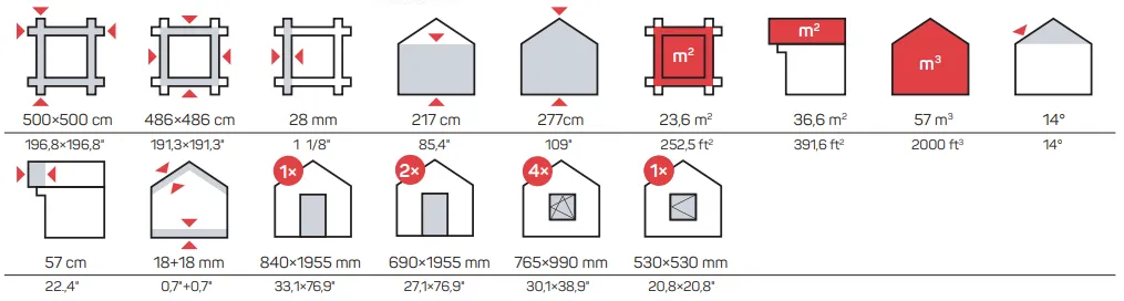 • Spoljašnje dimenzije zida: 486 x 486 cm