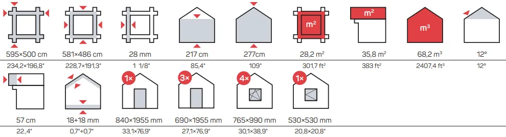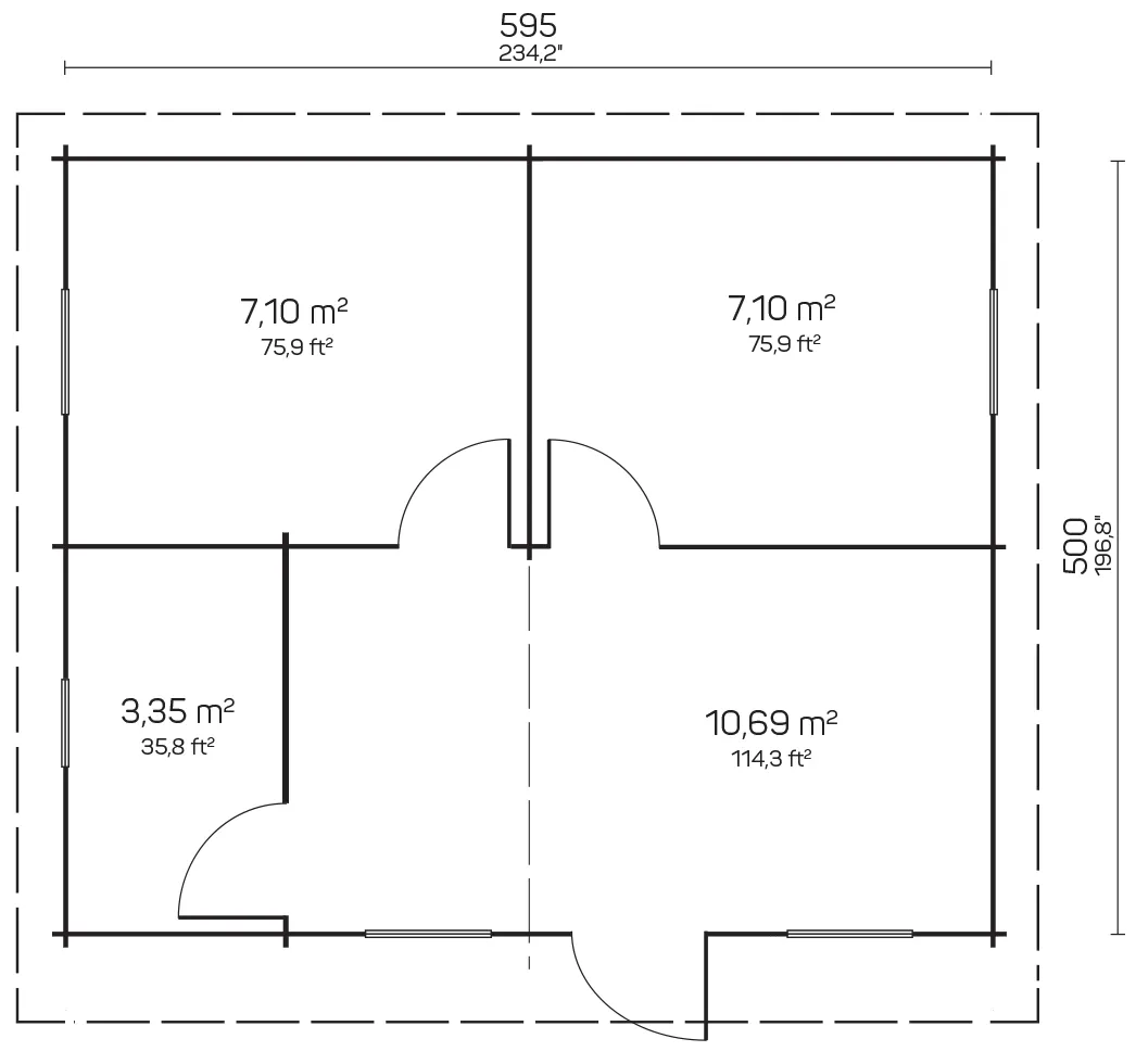 • Spoljašnje dimenzije zida: 581 x 486 cm