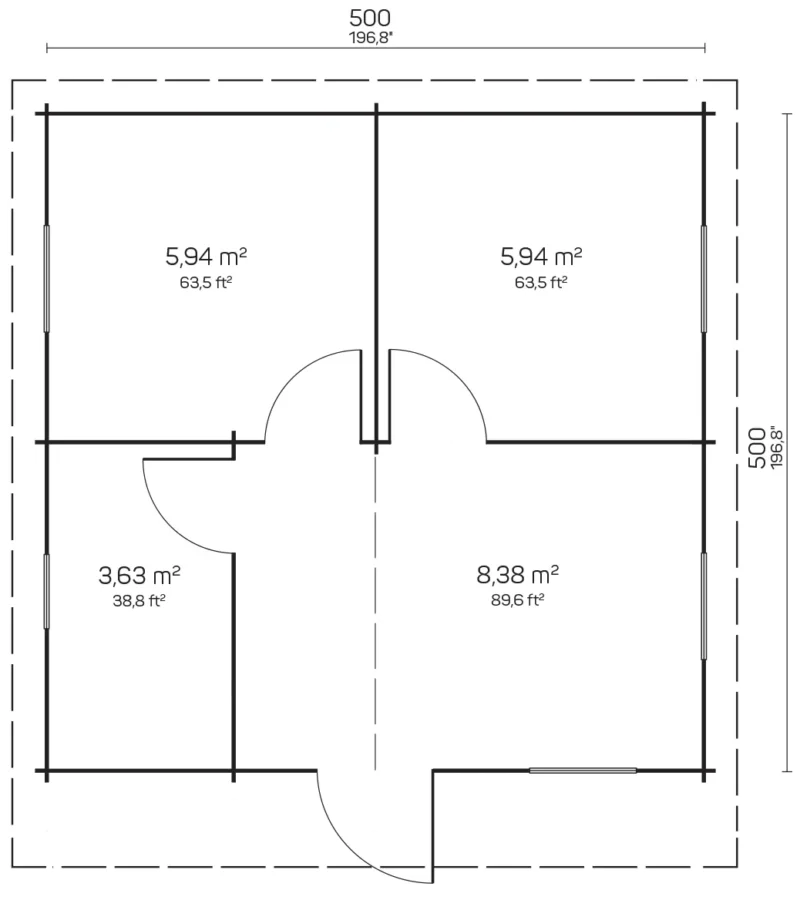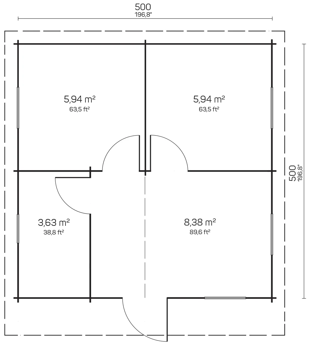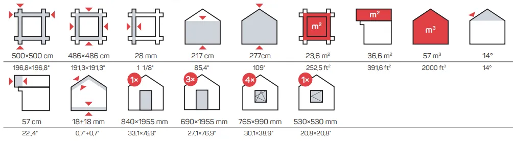 • Spoljašnje dimenzije zida: 486 x 486 cm