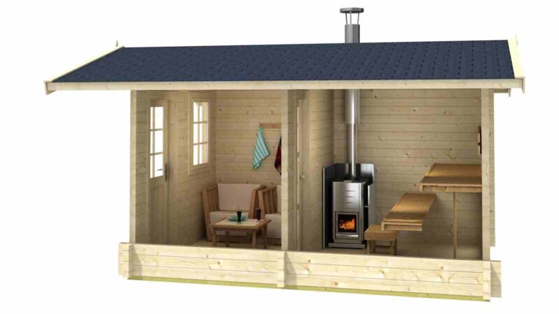 Drvena sauna Niklas sa terasom – komforna i funkcionalna