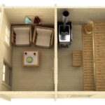 Set uključuje kompletne drvene panele, prozore, vrata, podne daske, pribor za montažu i uputstvo. Nije uključena peć i krovna pokrivenost – one se biraju po želji i moraju biti u skladu sa građevinskim propisima.
