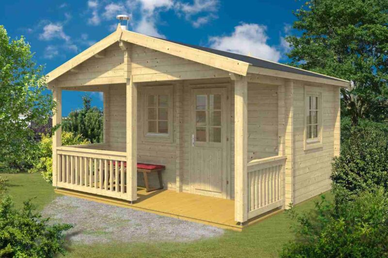 Prednosti: kompaktna, pogodna za manje dvorišne prostore, sa terasom i osnovnom izolacijom zidova – odlična za privatnu upotrebu tokom cele godine.