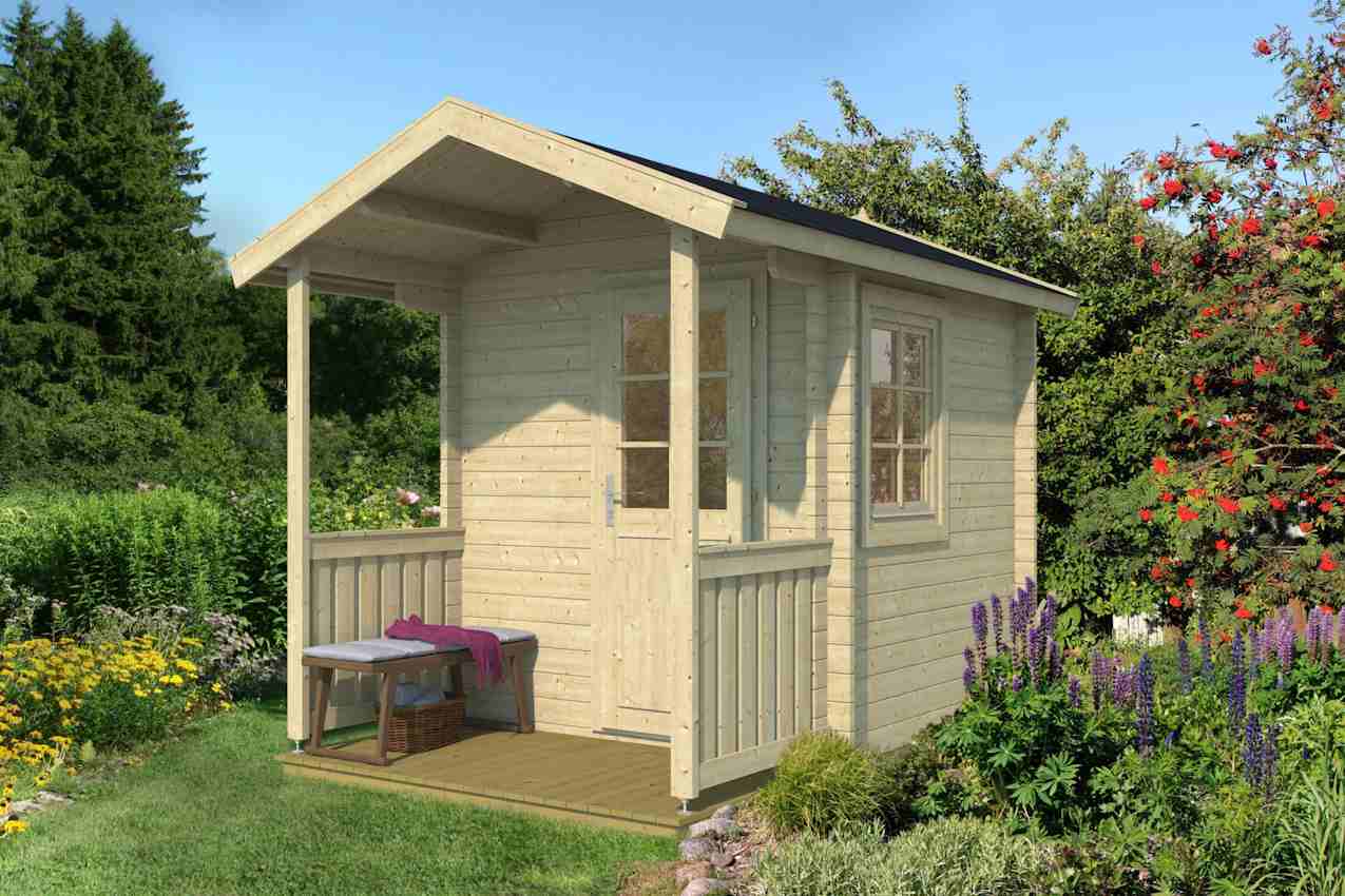 Prednosti: kompaktna, pogodna za manje dvorišne prostore, sa terasom i osnovnom izolacijom zidova – odlična za privatnu upotrebu tokom cele godine.