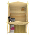U kompletu su drveni paneli, podna konstrukcija, prozori, vrata, klupe od jasena, pričvrsni materijal i detaljna uputstva za montažu.