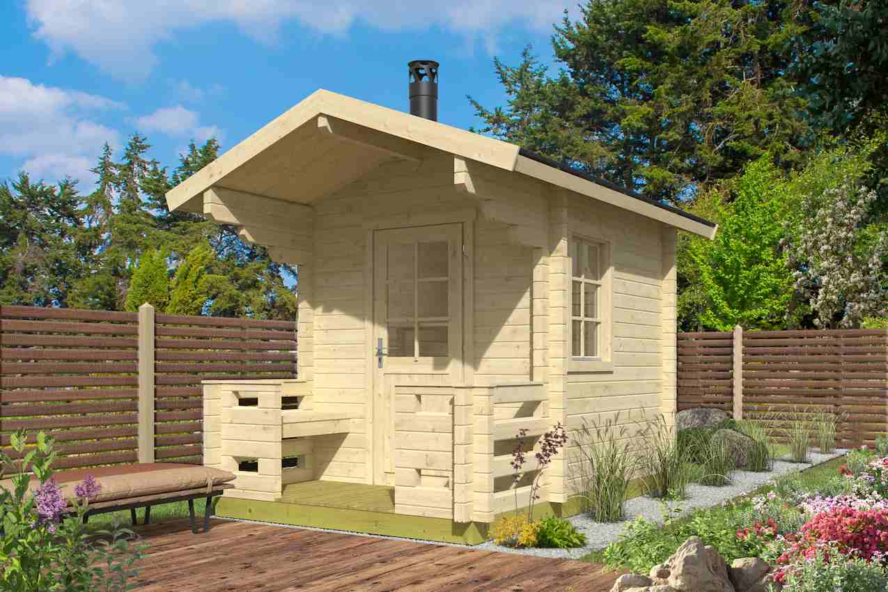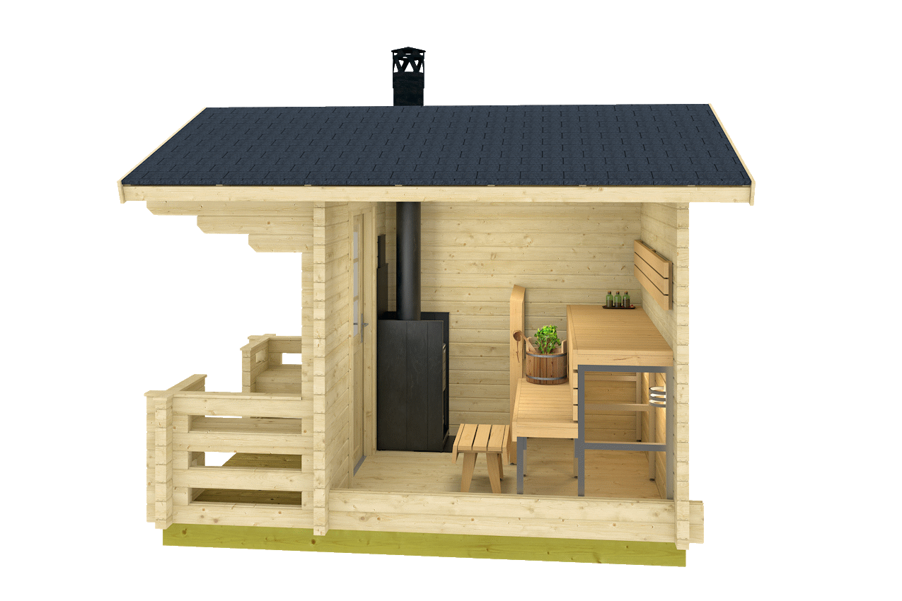 Drvena sauna Niklas sa terasom – komforna i funkcionalna