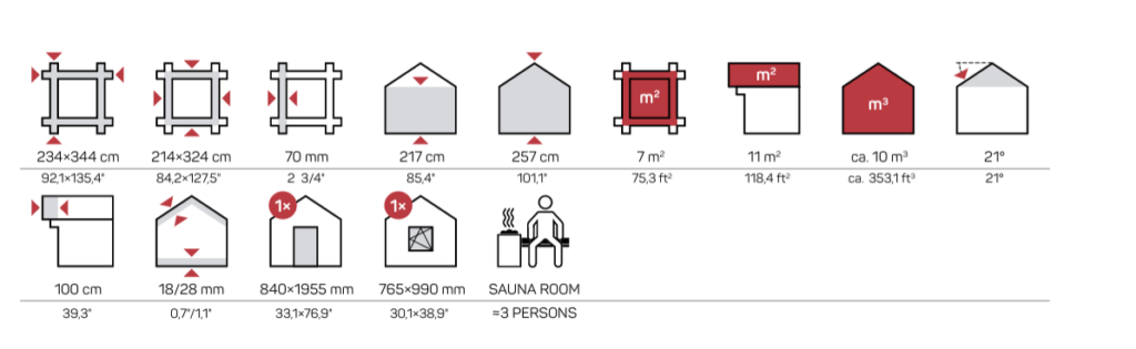 Piha Tuuri 7 je kompaktna spoljašnja sauna sa zidovima debljine 70 mm, namenjena za male dvorišne prostore ili vikendice. Izrađena od visokokvalitetne nordijske jelovine sa montažnim setom za jednostavnu izgradnju.