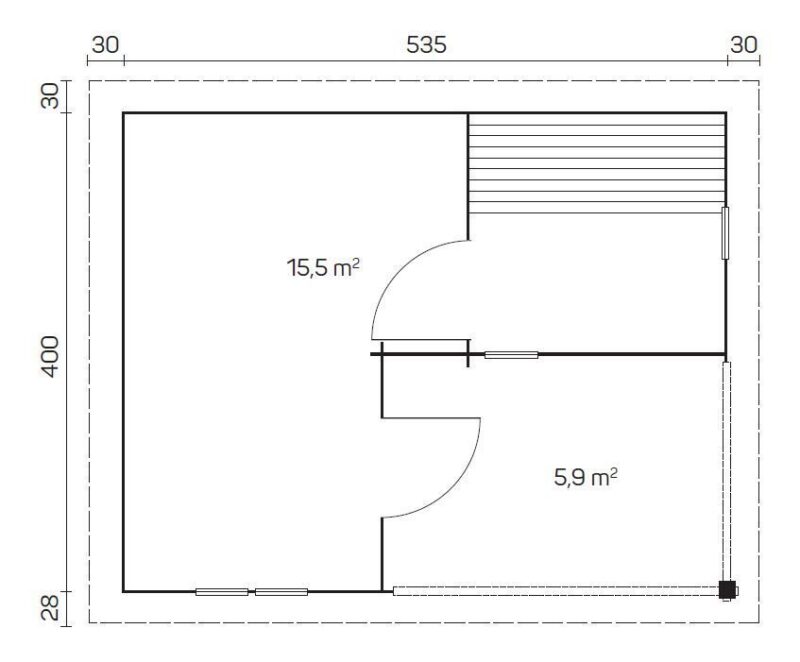 Villu je luksuzna spoljašnja drvena sauna sa debelim zidovima (70 mm), predsobljem i natkrivenom terasom. Dimenzije su pažljivo dizajnirane da ponude maksimalan komfor i estetiku u vašem dvorištu ili vikendici.
