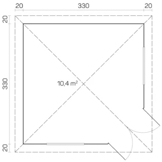 - Spoljašnje dimenzije zida: 330 x 330 cm