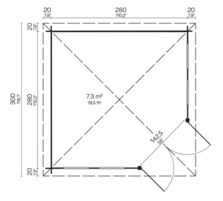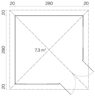 <li>Spoljašnje dimenzije zida: 280 x 280 cm</li>