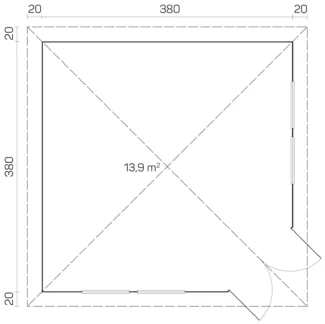 - Spoljašnje dimenzije zida: 380 x 380 cm
