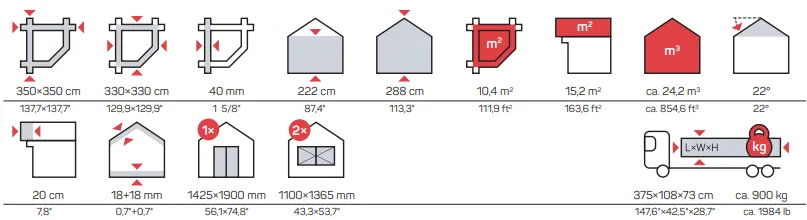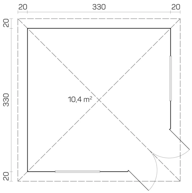 • Spoljašnje dimenzije zida: 330 x 330 cm