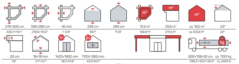 • Spoljašnje dimenzije zida: 556 x 280 cm
