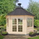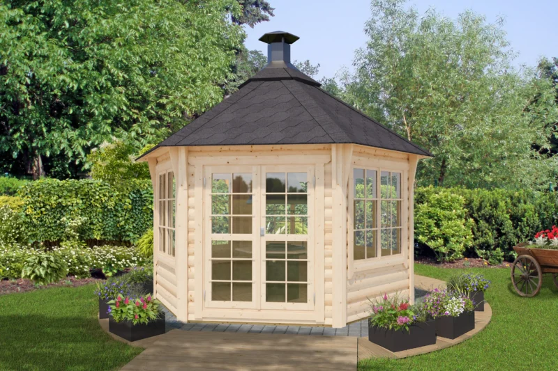 Zidovi debljine 40 mm omogućavaju optimalnu termalnu izolaciju, idealnu za korišćenje tokom cele godine. Dvostruka vrata i prozori izrađeni su od sušenog lameliranog drveta (sa 8–12% vlage), sa staklenim paketima i kvalitetnim okovom – za maksimalnu svetlost, komfor i sigurnost.