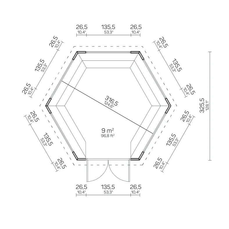 - Spoljašnje dimenzije zida: 316,5 x 367 cm
