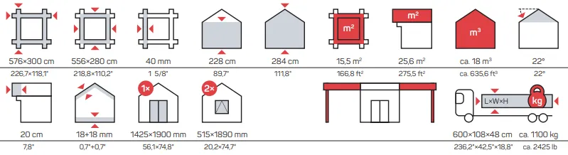 • Spoljašnje dimenzije zida: 556 x 280 cm