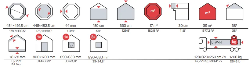 Napomena: Krovna folija/šindra nije uključena. Grejanje potrebno planirati (npr. peć 8–9 kW) i montirati prema propisima.