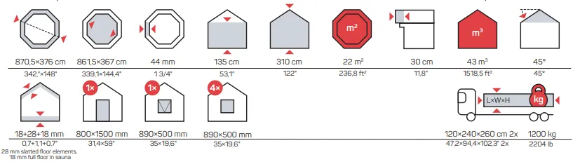 - Dimenzije paketa: 120 × 240 × 210 cm