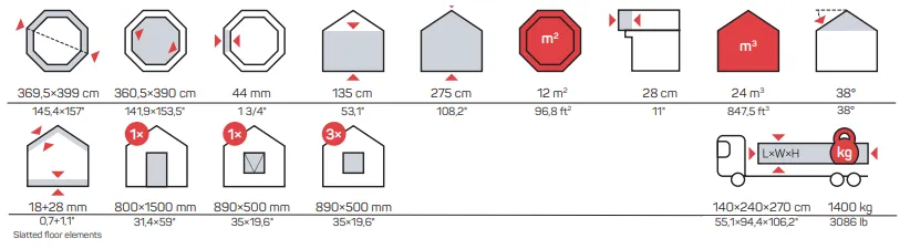 - Zapremina kuće: 12 m³