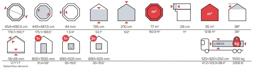 - Zapremina kuće: 18 m³