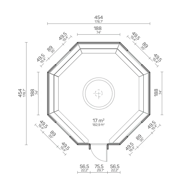 - Visina bočnog zida: Ø 210 cm
