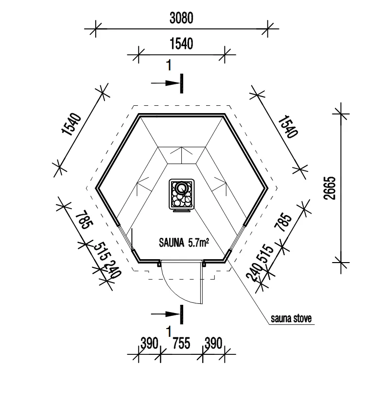 Ø2m - 300h200h210 cmBaštenska sauna 3 m za 4 osobe sa predsobljem (Ø2 m)