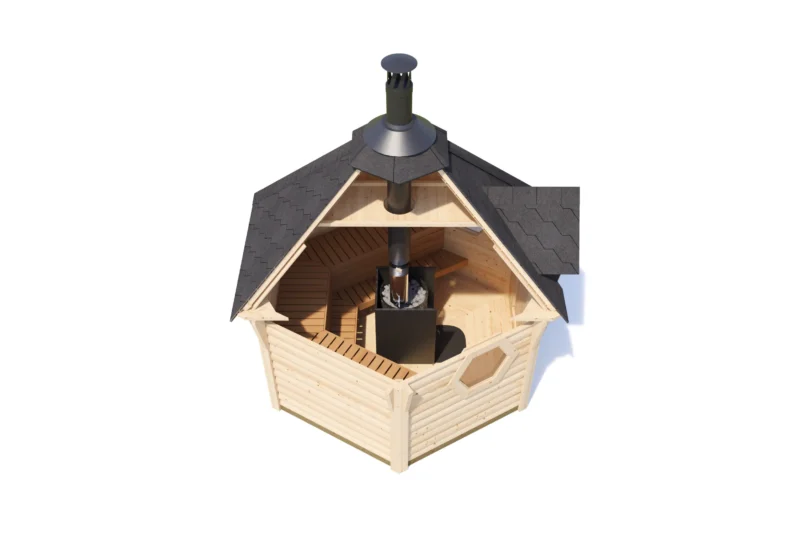 Ø2m - 280h200h210 cmBaštenska sauna 2,8 m za 4–6 osoba sa spoljnim klupama